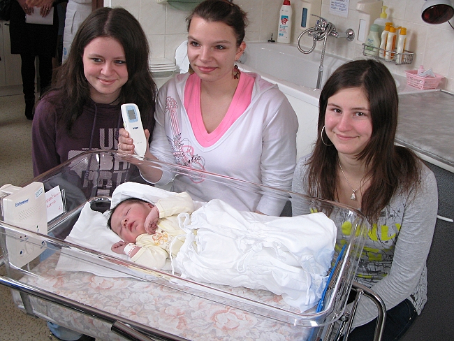 Studentky našà školy na novorozeneckém oddÄ›lenà s novým pÅ™Ãstrojem (bilirubinometr)