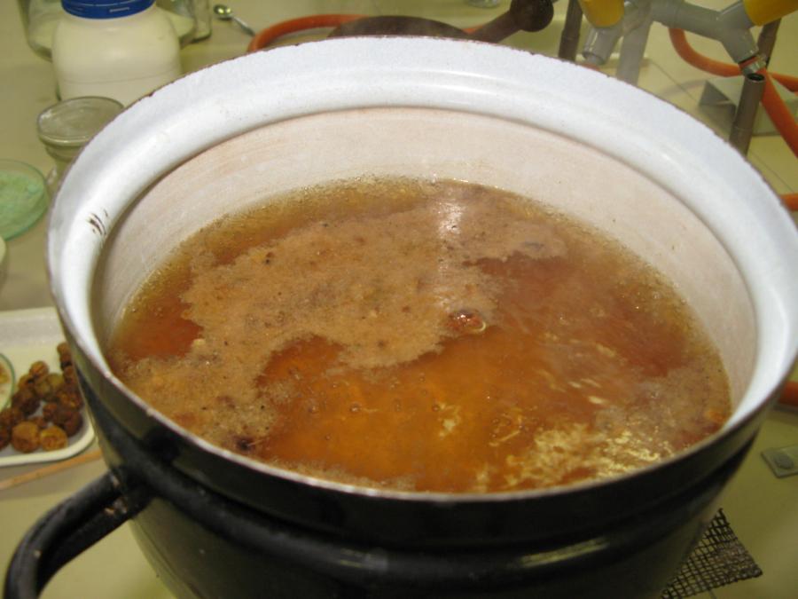 Výtažky z dubÄ›nek se vyvaÅ™ujà nÄ›kolik desÃtek minut.