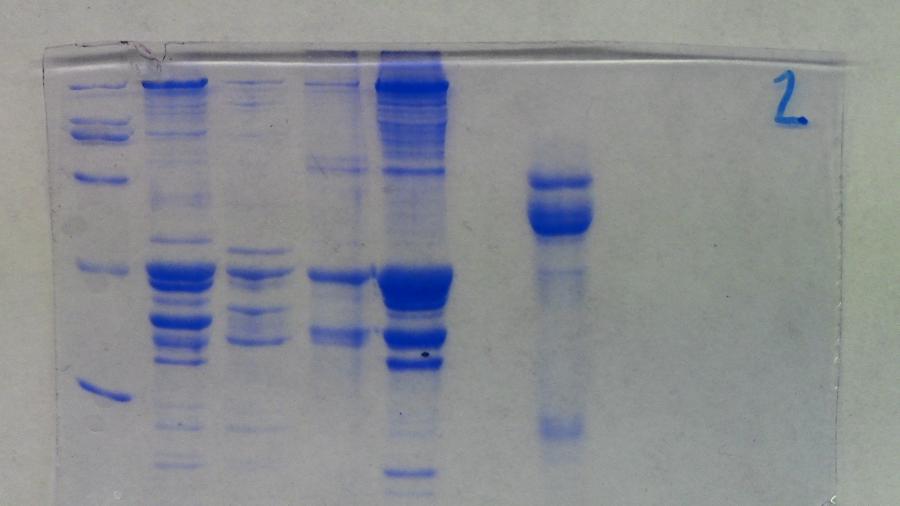 Výsledek rozliÅ¡enà rybÃch bÃlkovin a bÃlkovin slin gelovou elektroforézou.